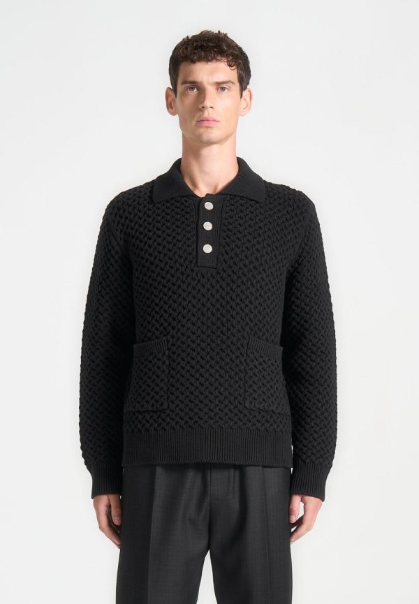 Knitwear | Men Manière De Voir Waffle Knit Polo Jumper Black