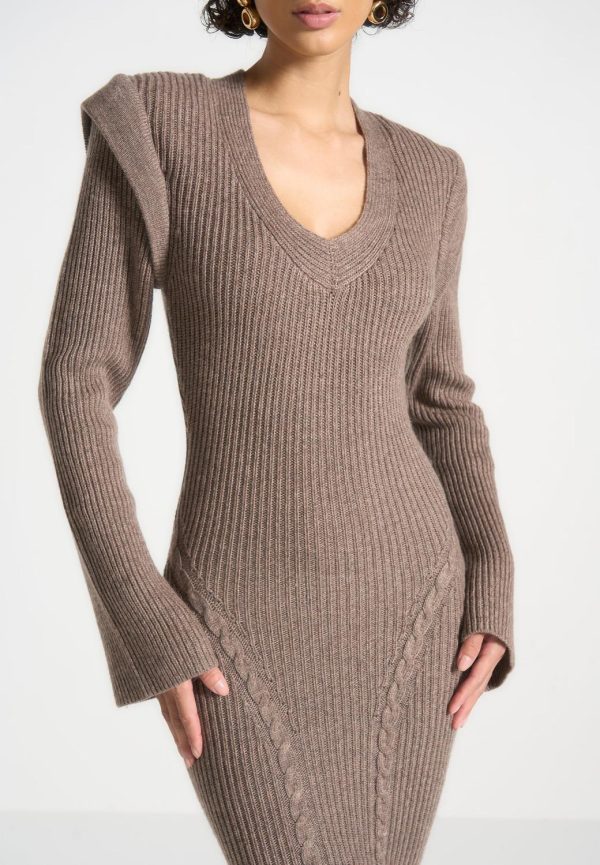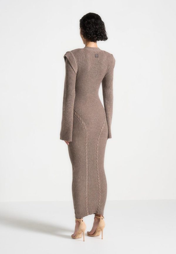 Elevate your style with our Wide Shoulder Knitted Midaxi Dress. The wide shoulder and long sleeve design provide a flattering silhouette while the knit contour detailing adds a touch of texture. Perfect for any occasion, this dress offers both comfort and style.