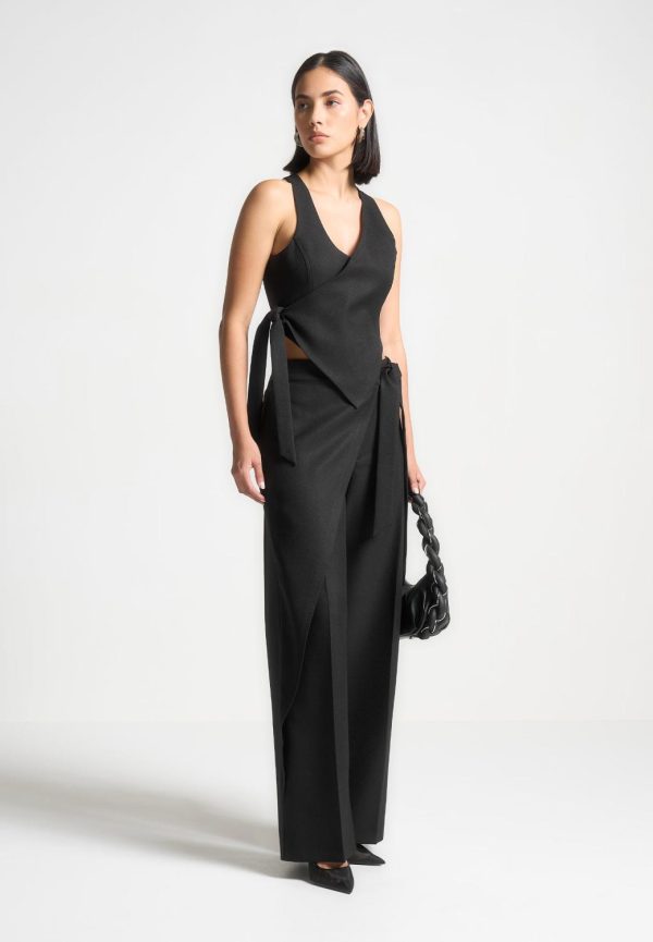 This waistcoat corset top features a tie closure and structural boning for a flattering fit. The unique tie feature adds a touch of elegance to this versatile piece. Expertly designed for a perfect fit, this corset top is a must-have for any wardrobe.