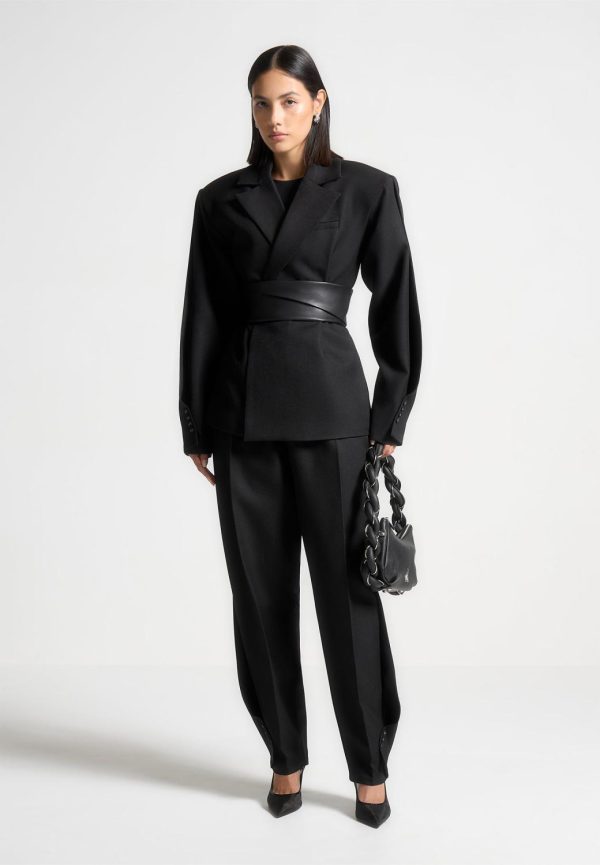 Expertly crafted for a tailored fit, these trousers feature twist detailing and centre pleats for a stylish and professional look. Elevate your wardrobe with these versatile trousers that combine fashion and function.